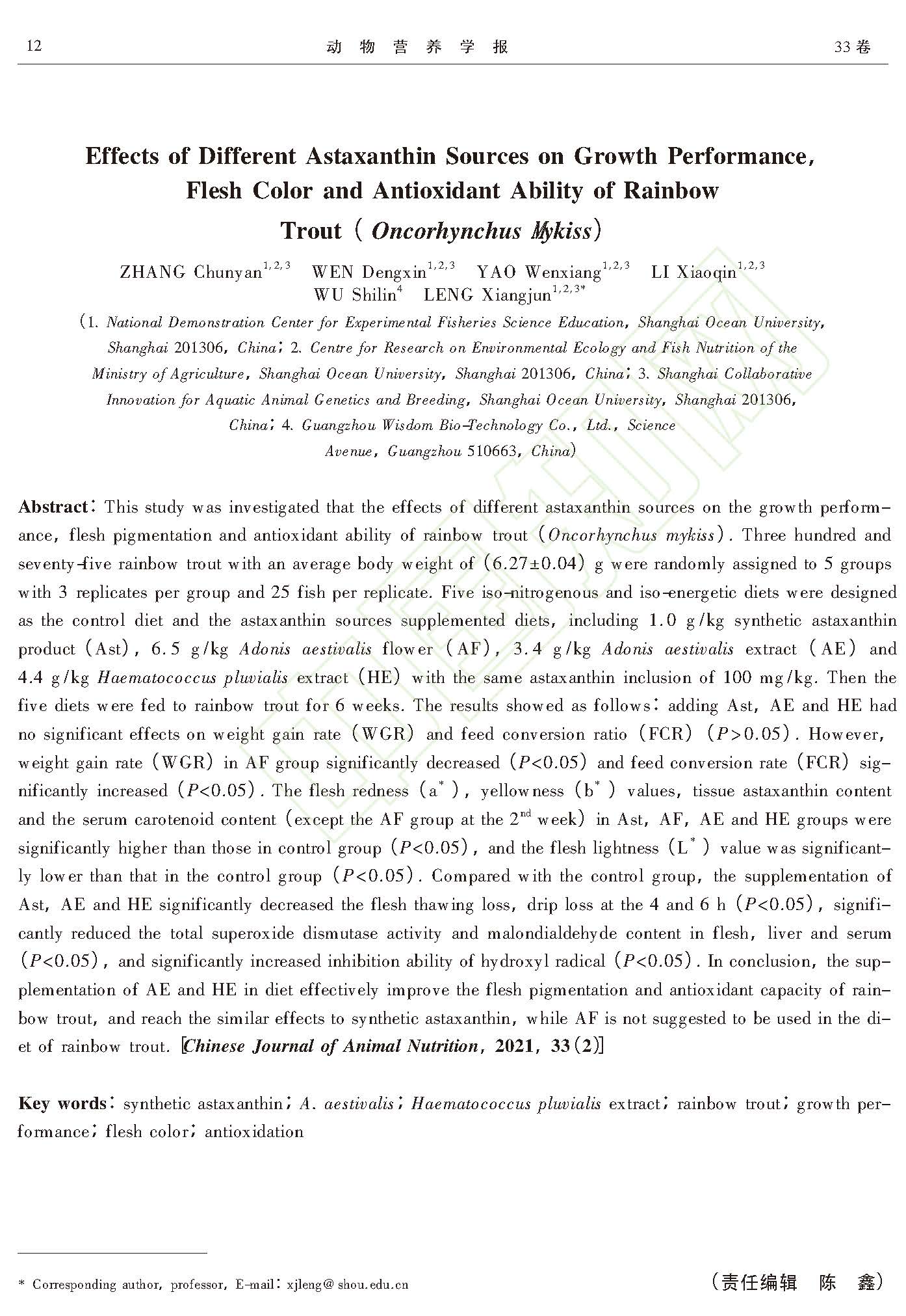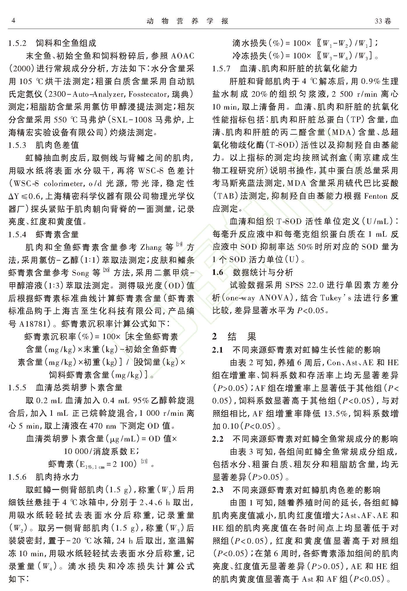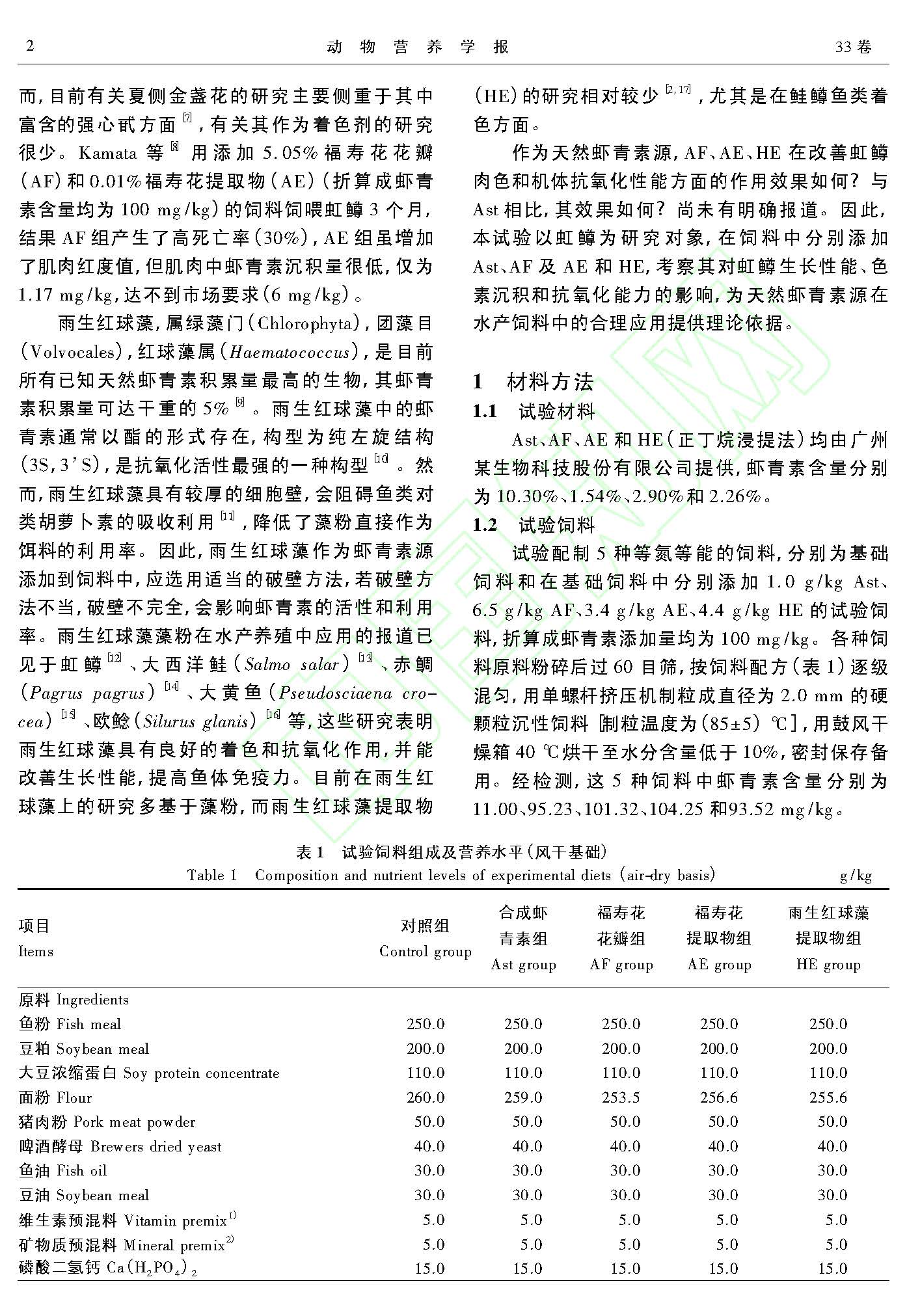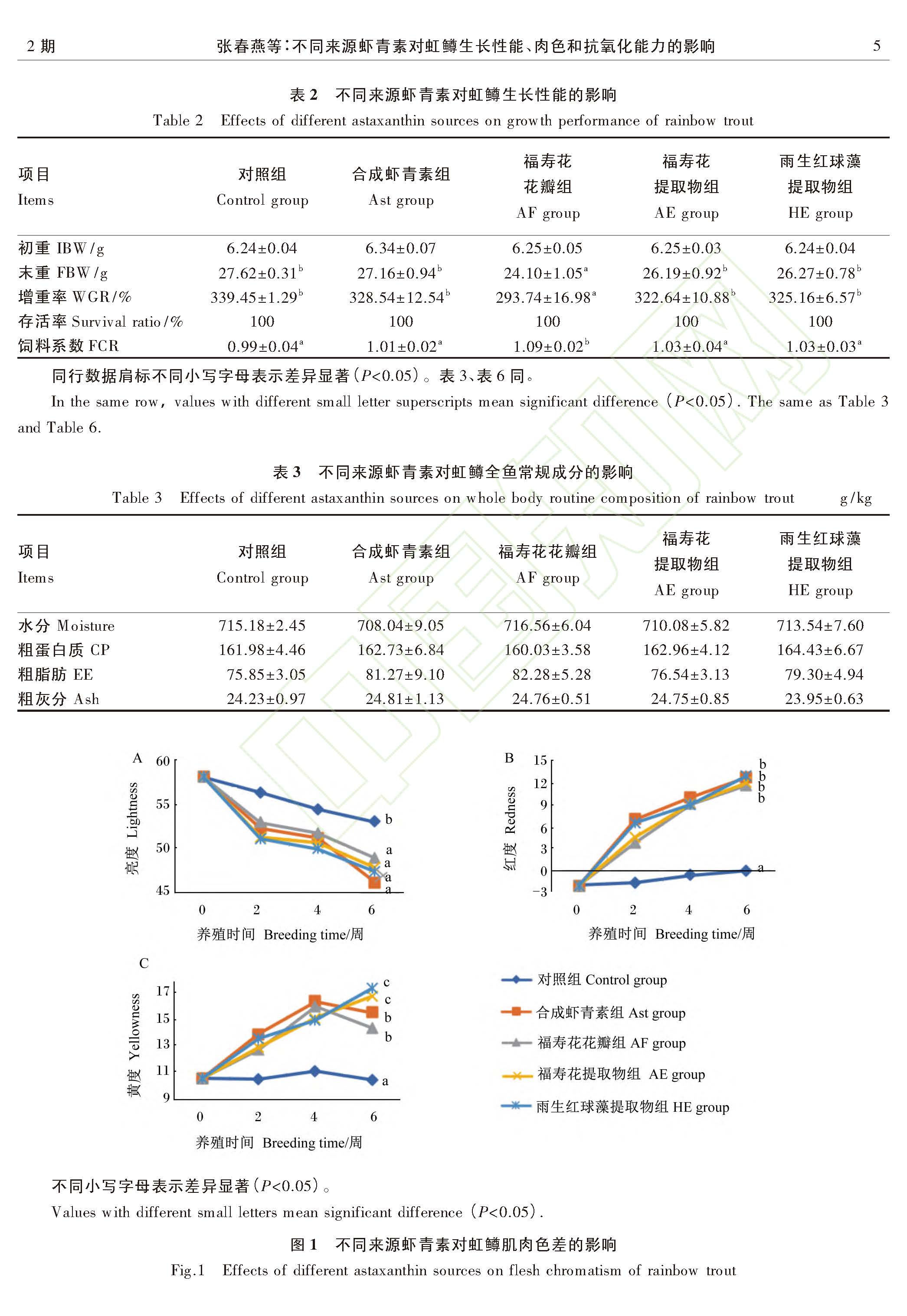 不同来源虾青素对虹鳟生长性能肉色和抗氧化能力的影响