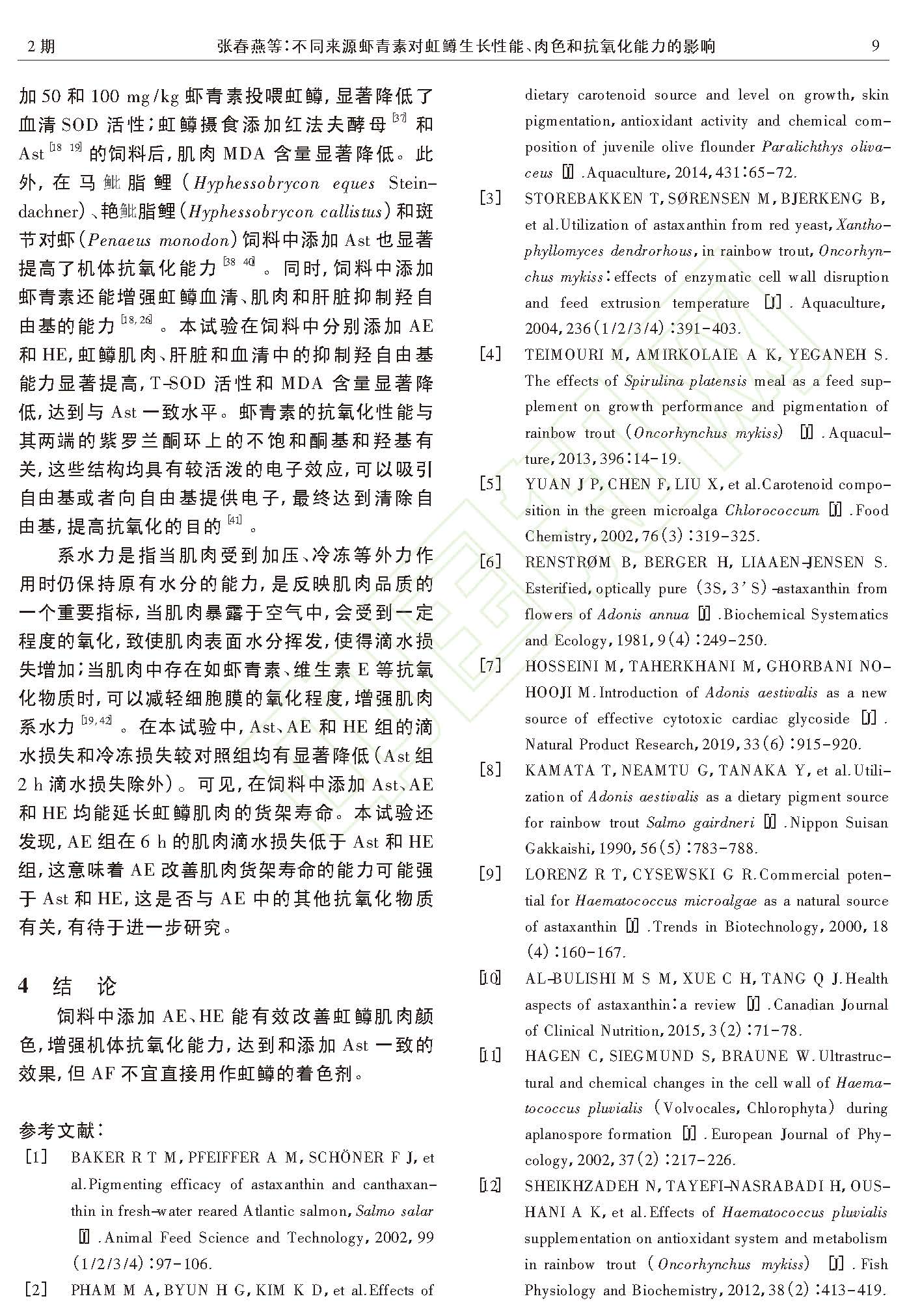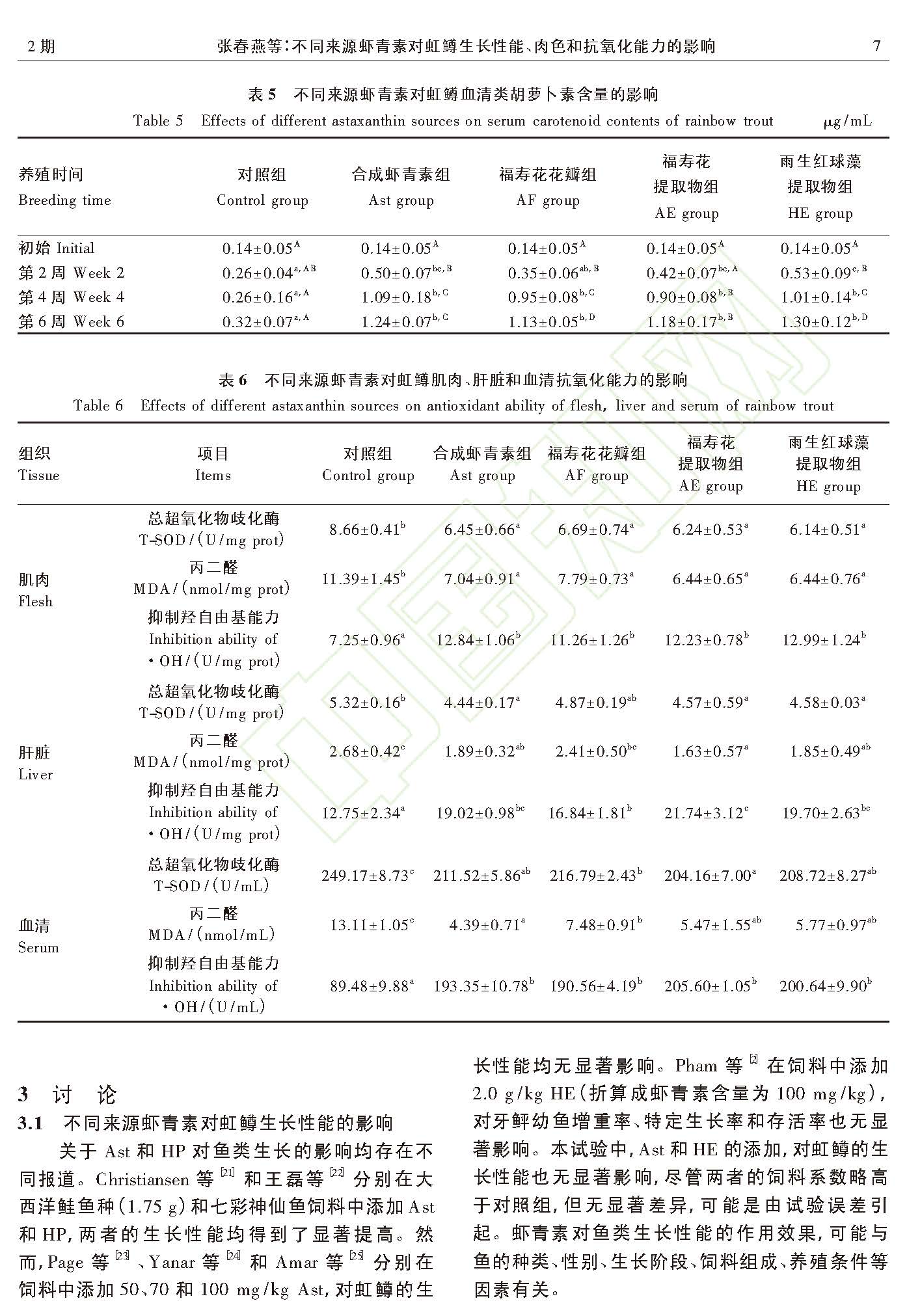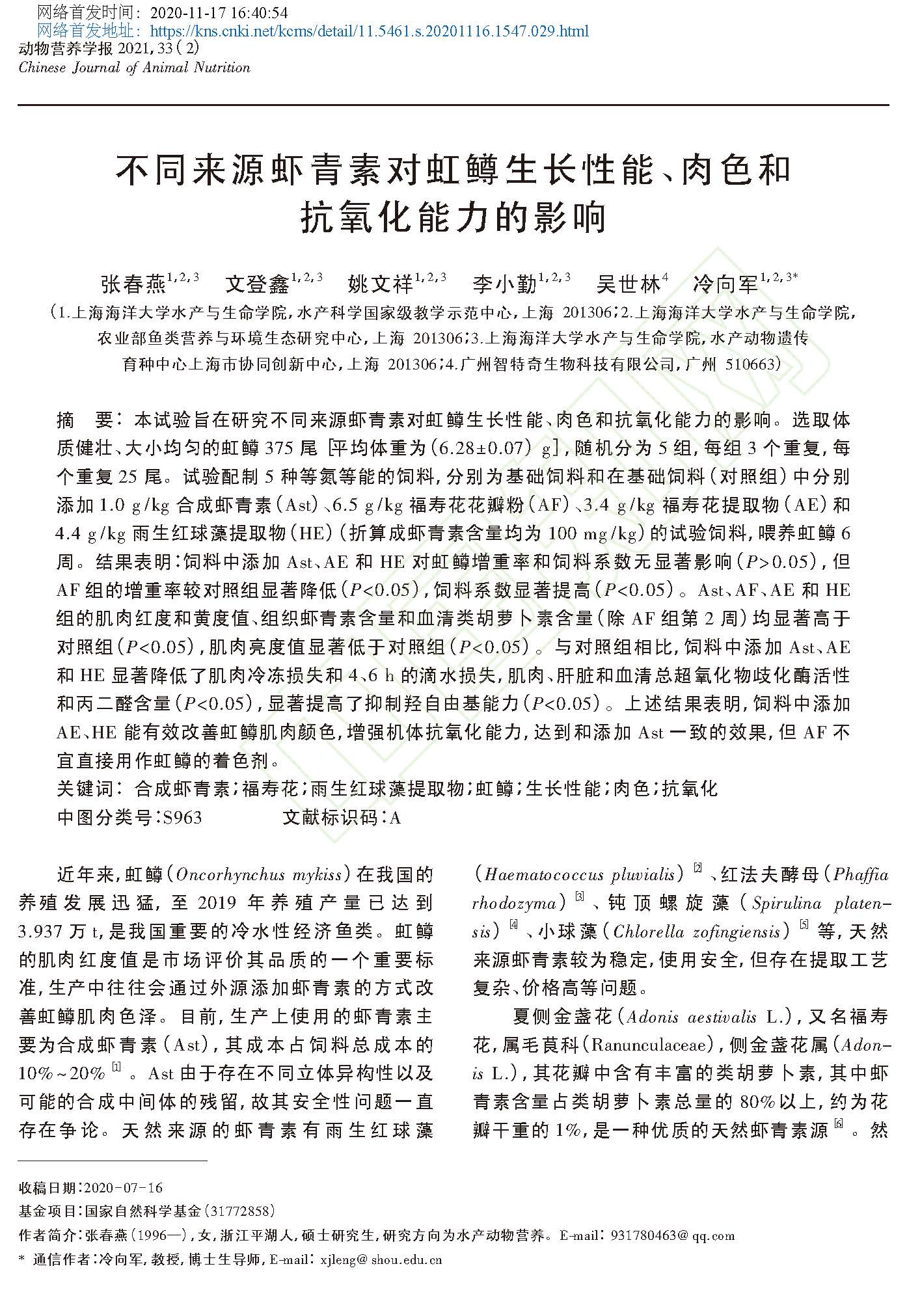 不同来源虾青素对虹鳟生长性能肉色和抗氧化能力的影响
