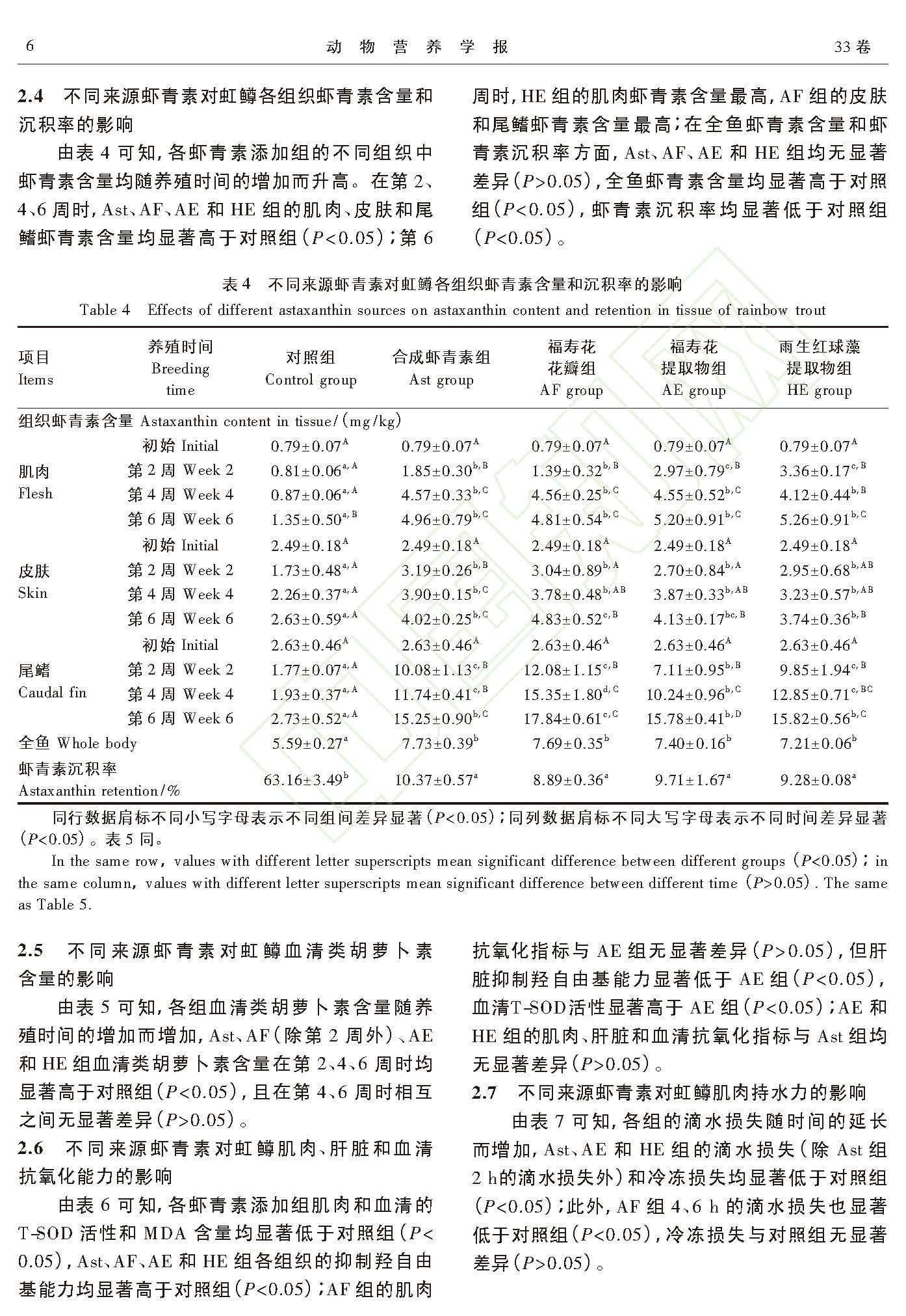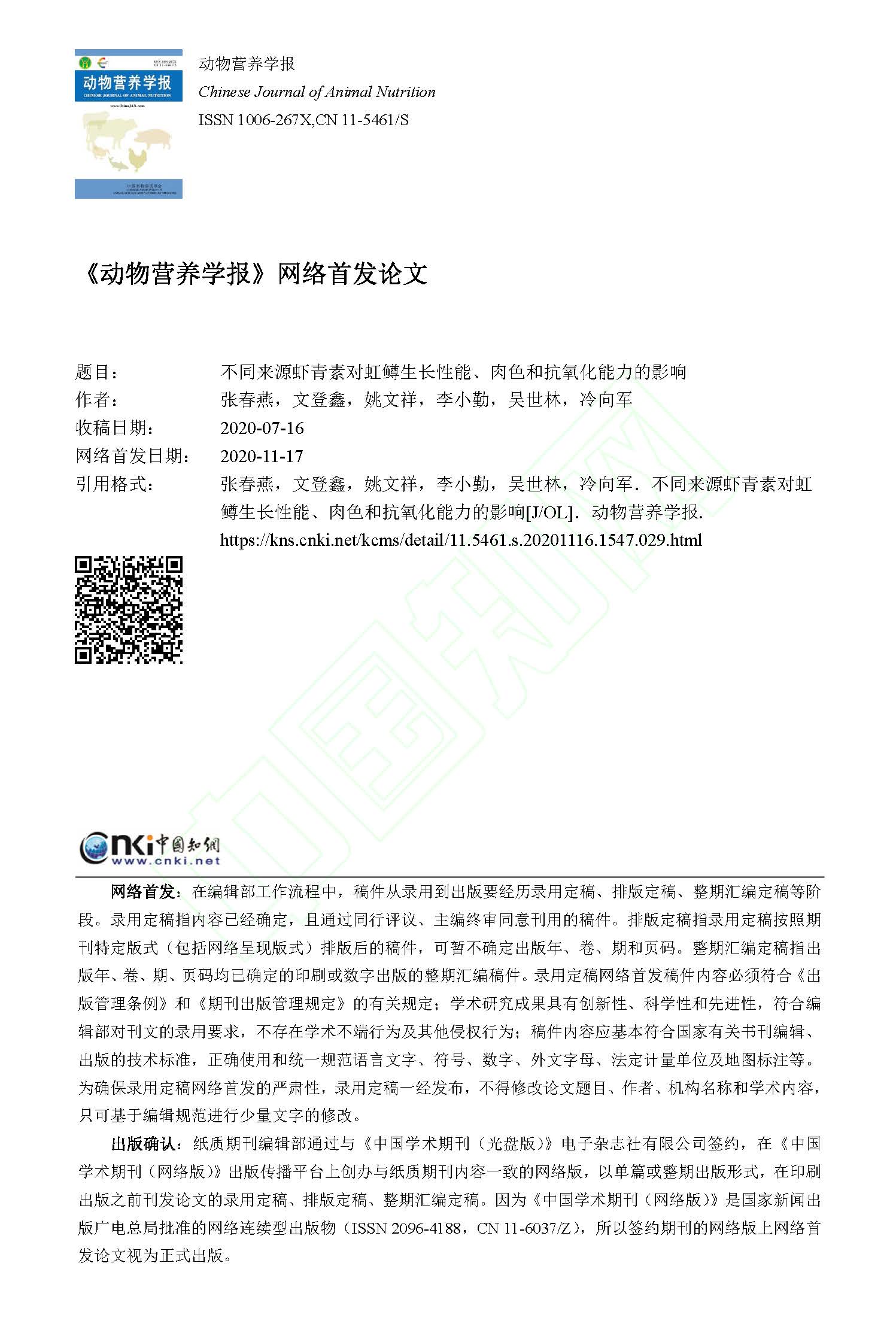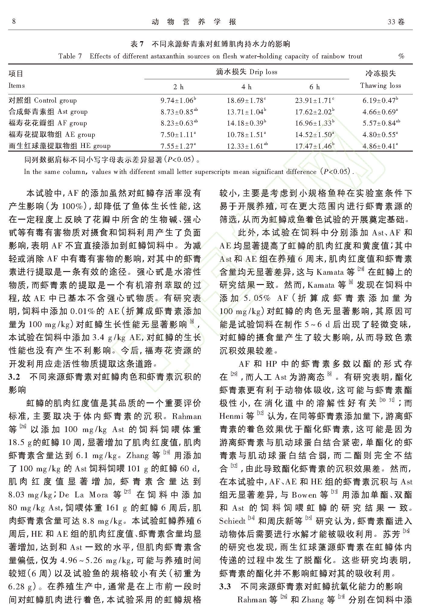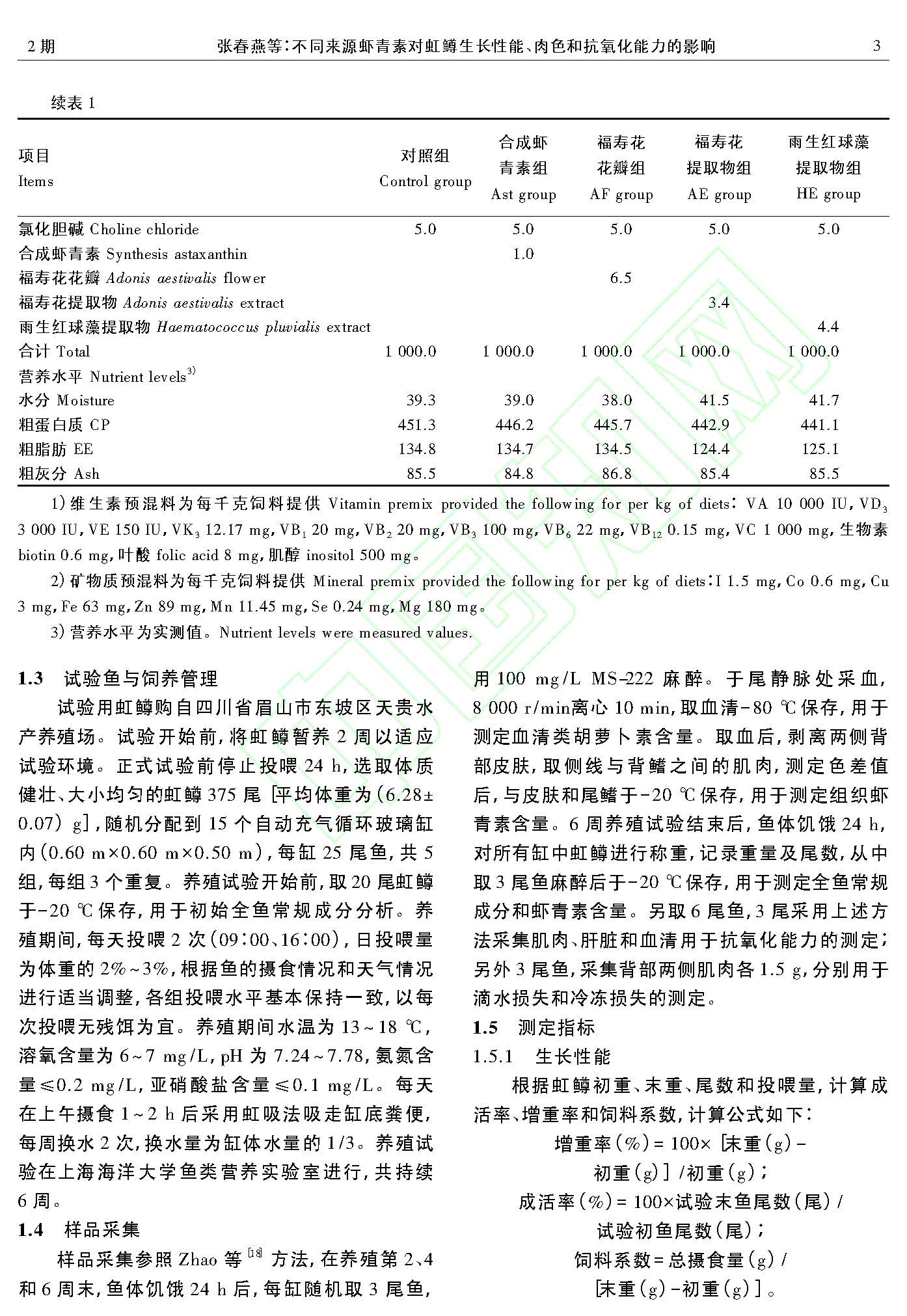 不同来源虾青素对虹鳟生长性能肉色和抗氧化能力的影响