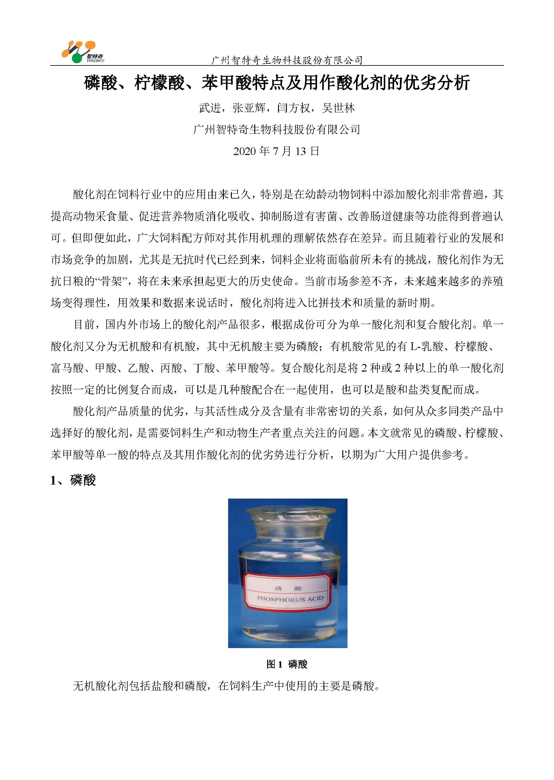 磷酸、柠檬酸、苯甲酸的特点及用作酸化剂的优劣分析