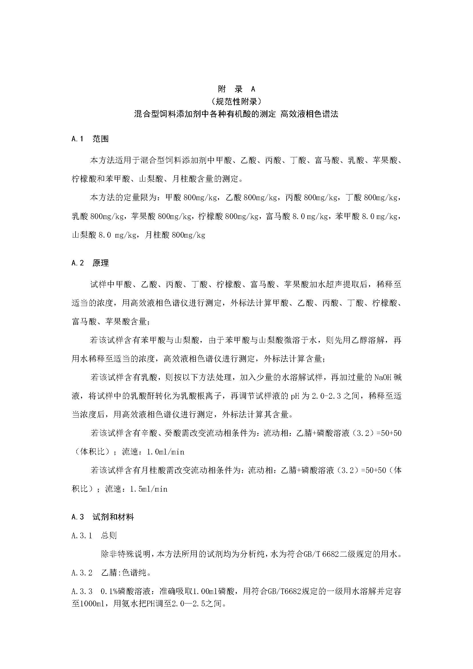 混合型饲料添加剂中各种有机酸的测定