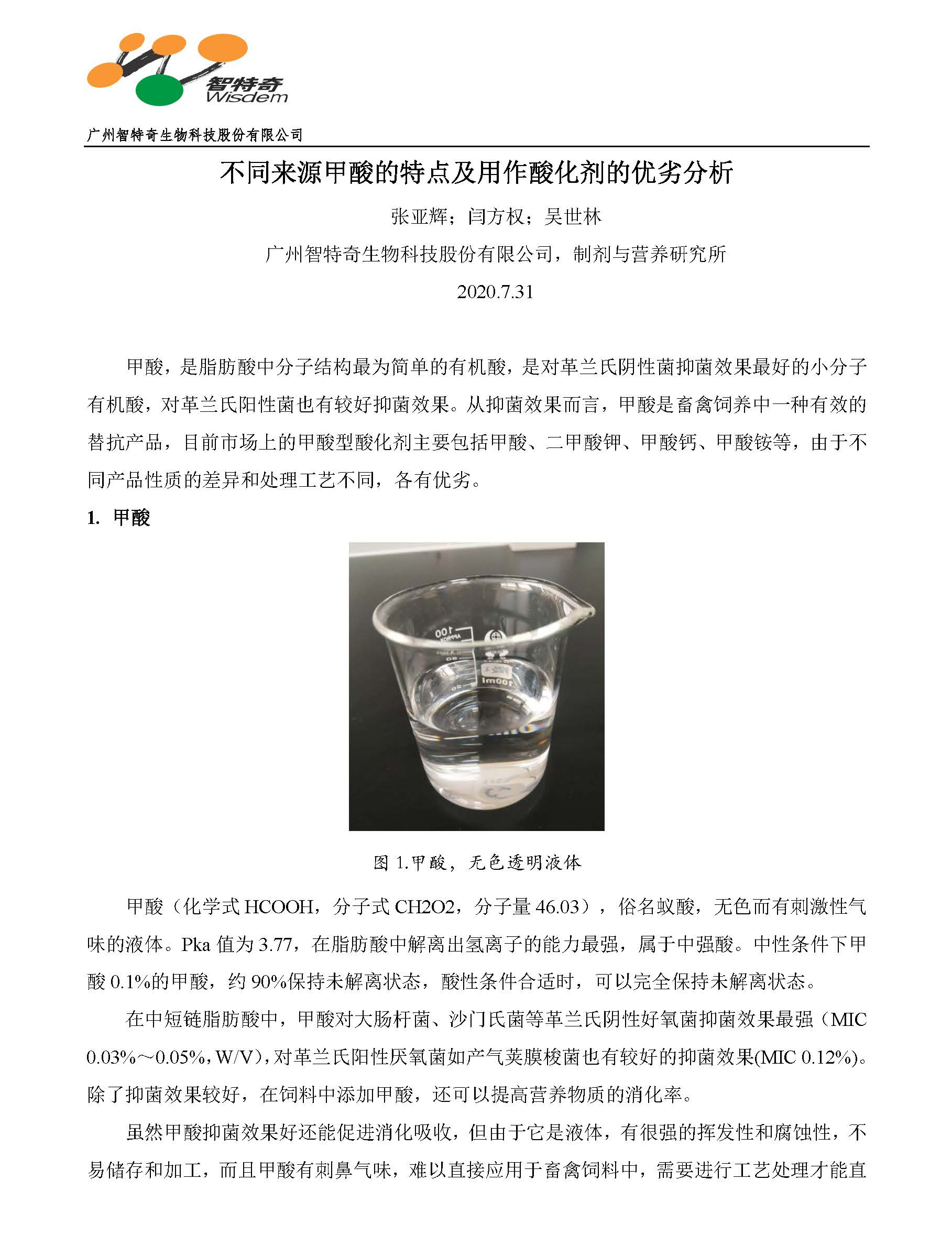 不同来源甲酸的特点及用作酸化剂的优劣分析