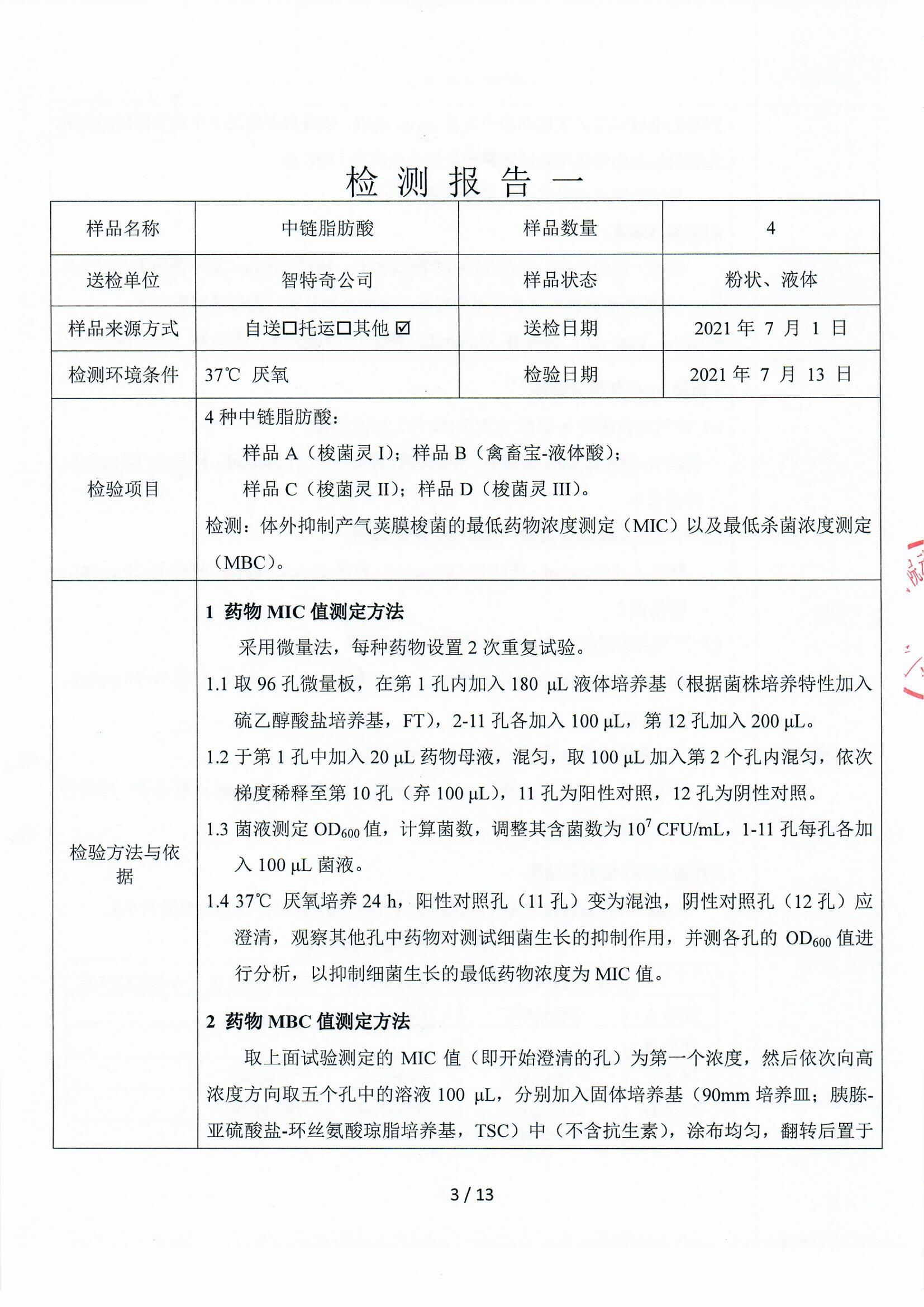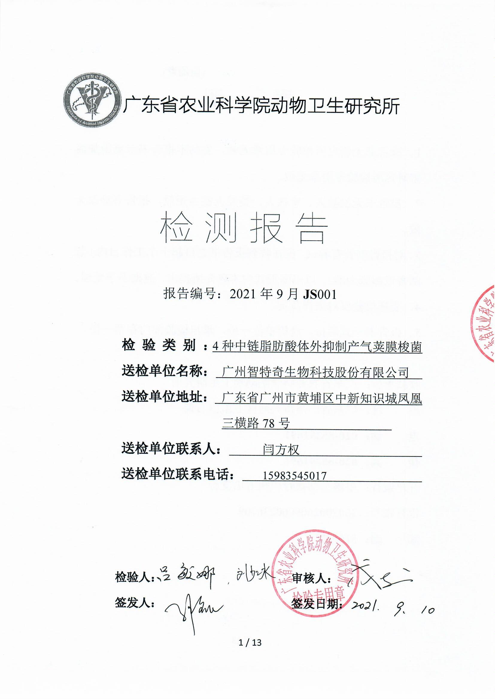 4种中链脂肪酸对梭菌性坏死性肠炎病的防治效果评价报告(广东农科院)