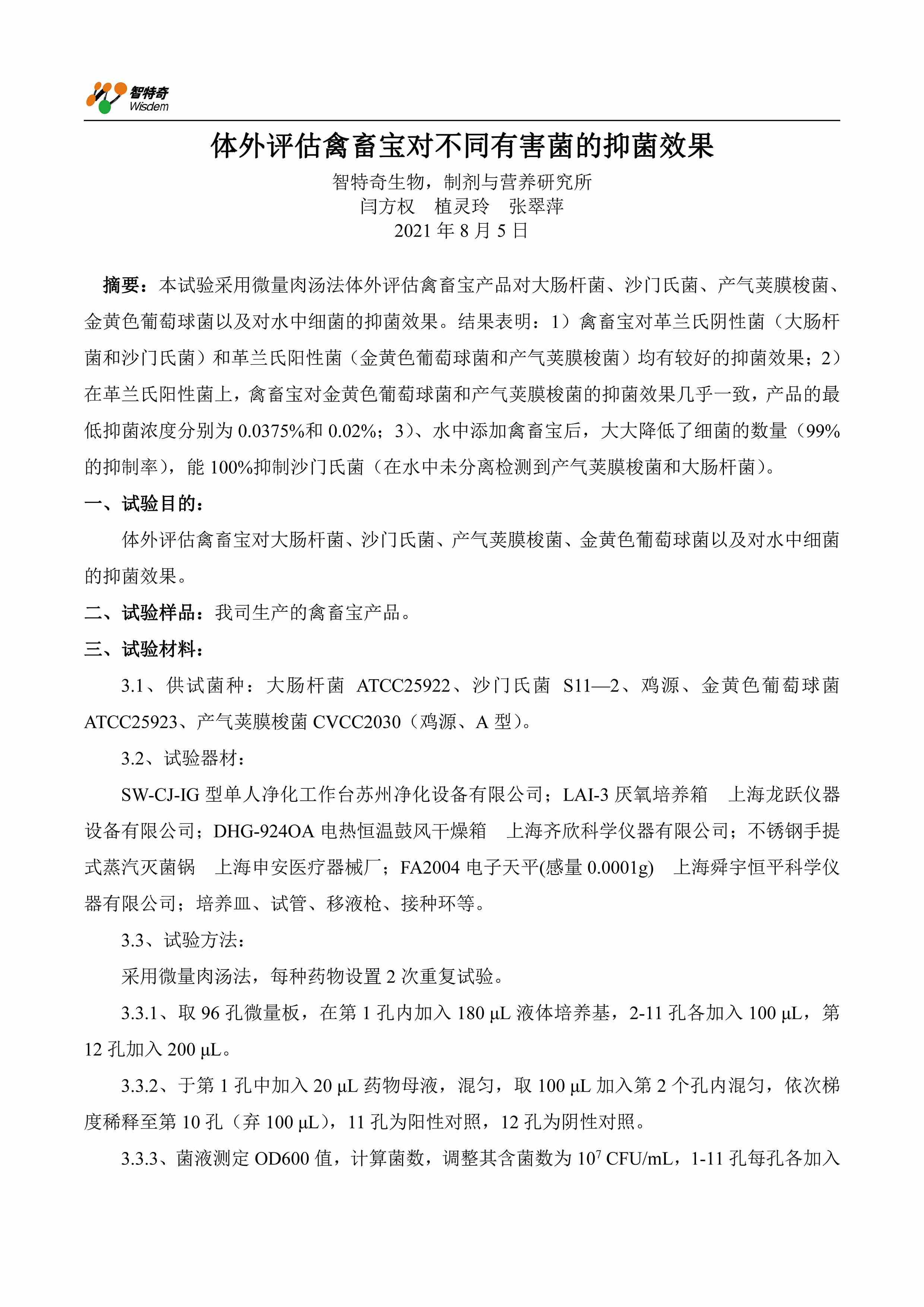 体外评估禽畜宝对不同有害菌的抑菌效果